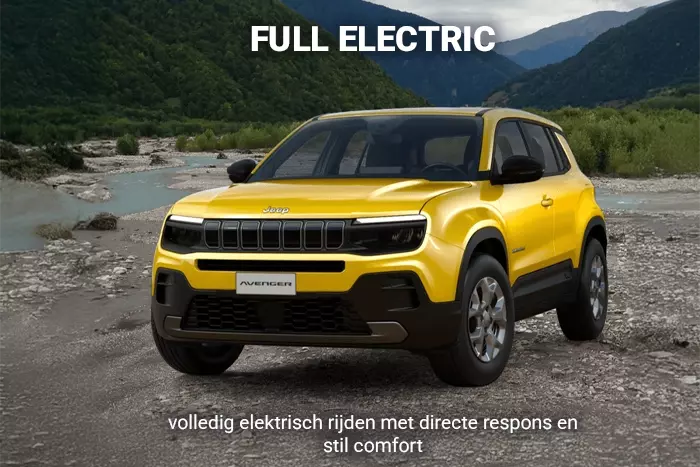 Genoemde vanafprijs is gebaseerd op Jeep Avenger Private Lease onder actievoorwaarden. Looptijd, kilometrage, uitvoering en beschikbaarheid zijn van invloed op het maandbedrag. Informeer bij jouw Jeep-dealer naar de actuele voorwaarden. Afbeeldingen kunnen afwijken van de werkelijke uitvoering.