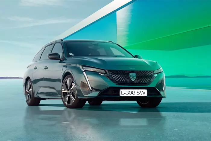 De E-308 SW is een ruime en veelzijdige elektrische stationwagen met een actieradius tot 416 kilometer (WLTP). De auto biedt een modern interieur met veel bagageruimte, de nieuwste i-Cockpit technologie en een accupakket van 54 kWh.